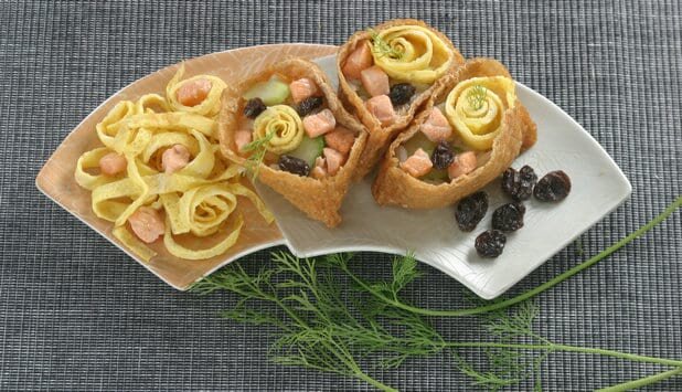 日本豆腐袋包裹挪威三文魚炒飯
