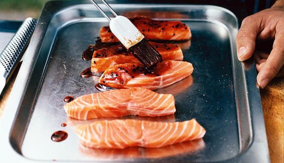 將挪威三文魚柳伴以紅豆窩夫一同上碟,因應個人口味稍加蜜糖,趁熱食用。